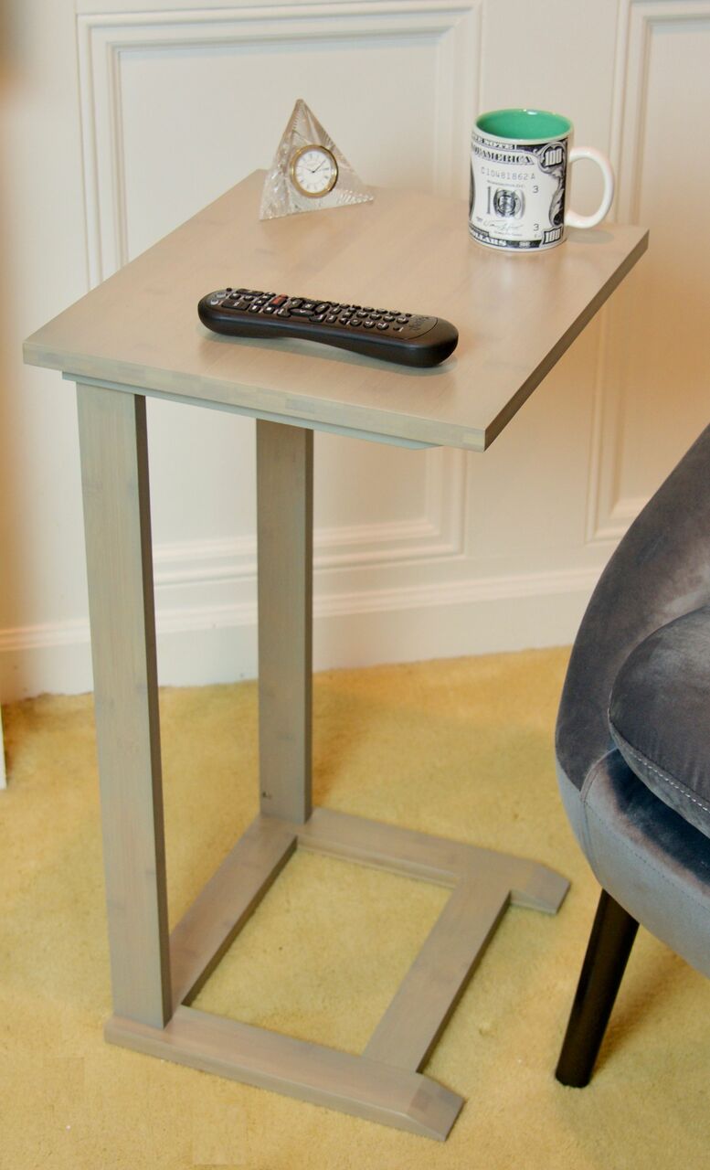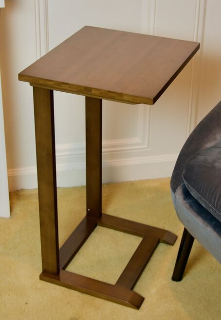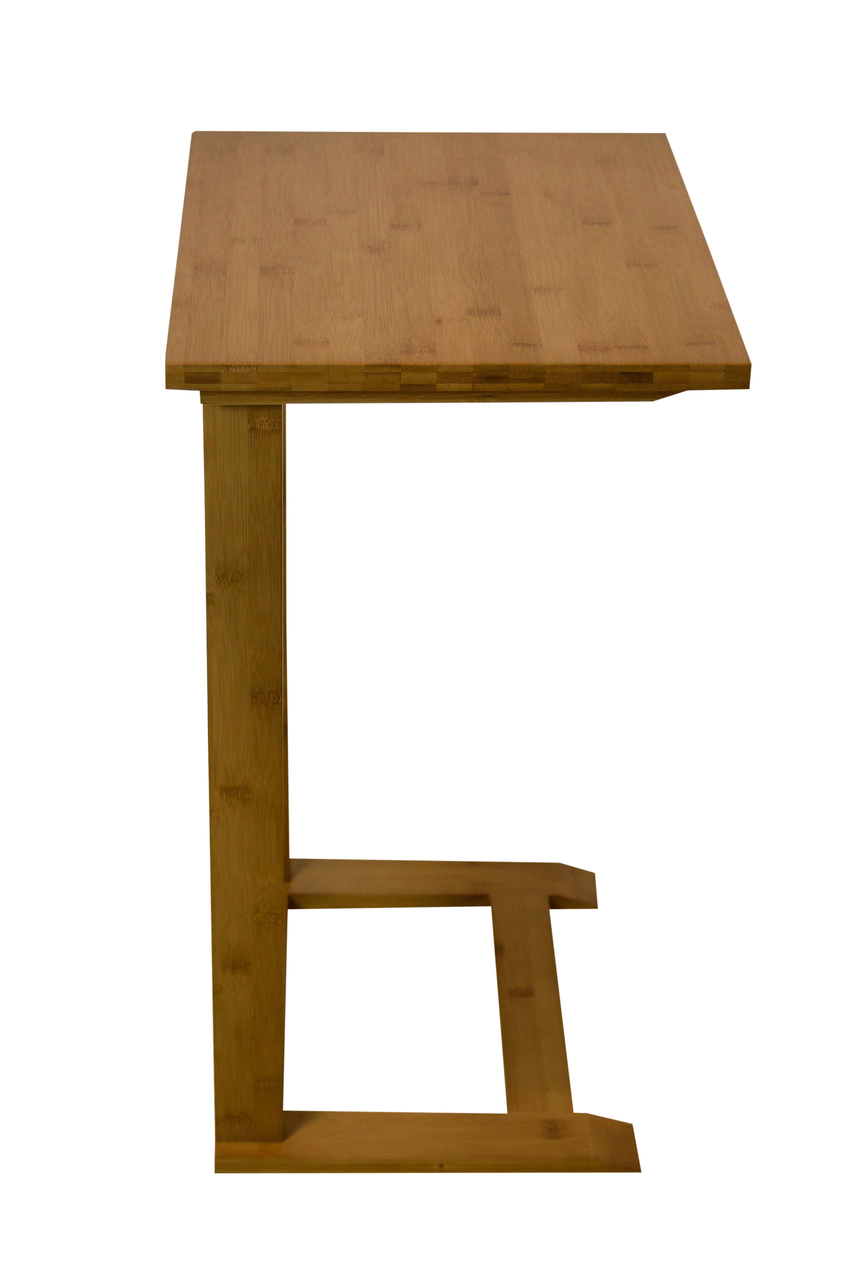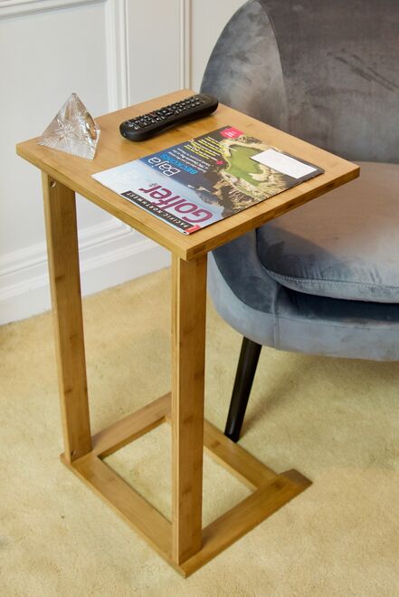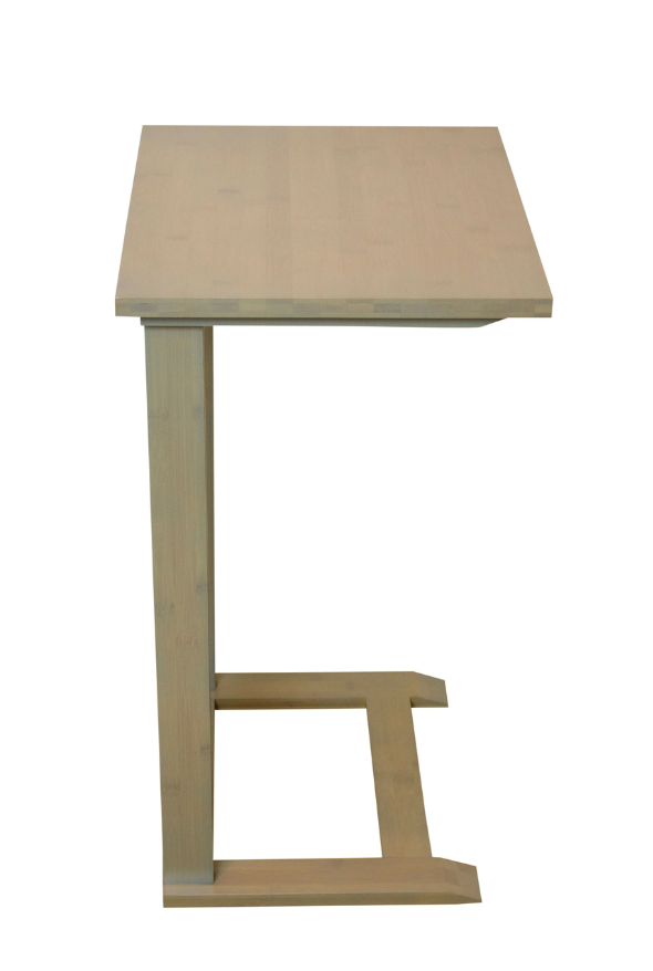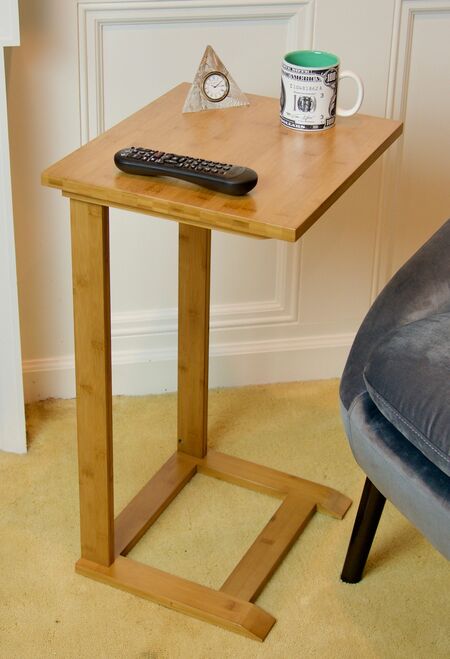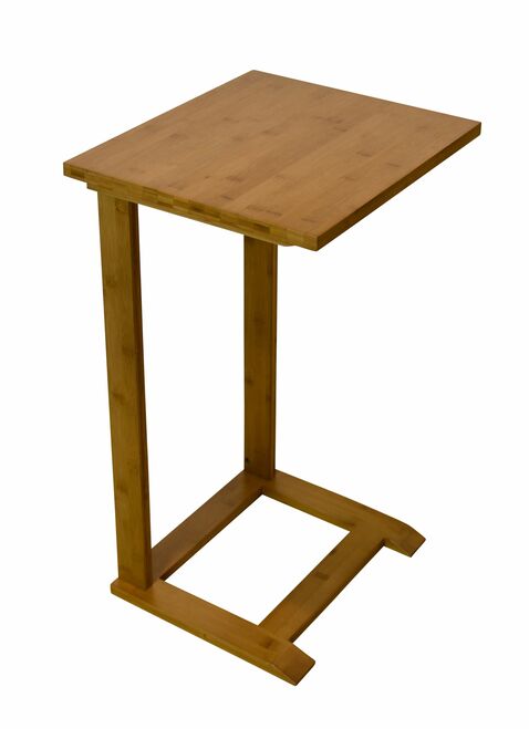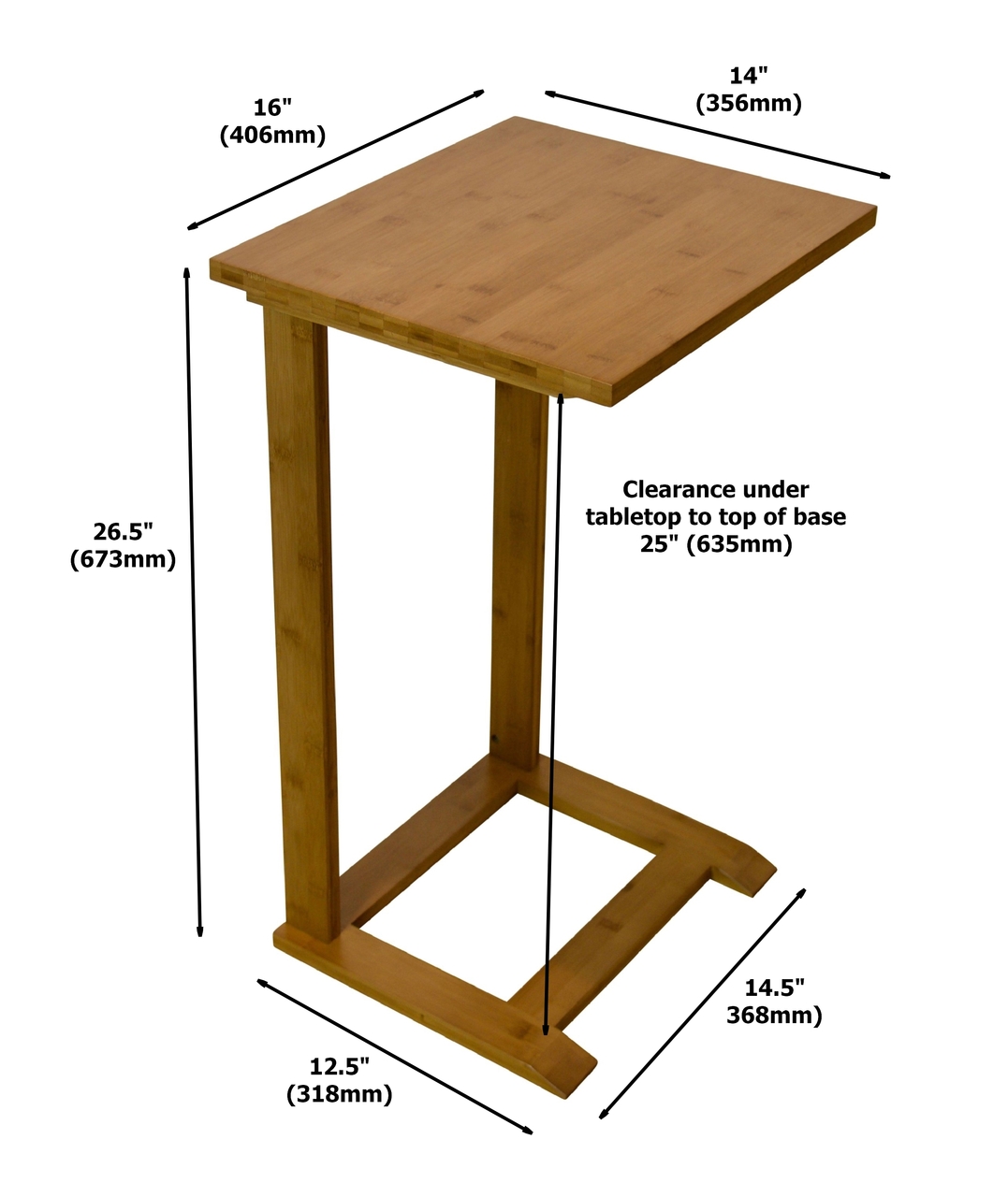 Small space friendly and extremely sturdy, this durable bamboo C-table compliments any décor. Simple and easy to assemble, the well-designed solid bamboo construction will support 30 lbs. With a clearance of 25” under the tabletop it will slide over the arms of most upholstery. The tabletop is 16” wide and 14” deep to fit virtually all laptops comfortably, or coffee, magazine and your remote. Possibilities are endless.