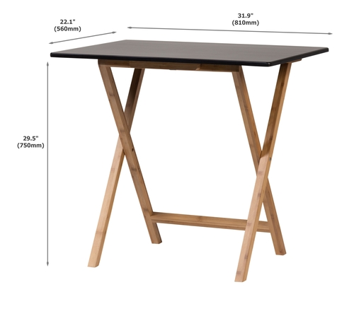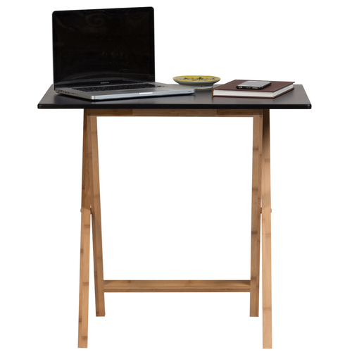 This solid bamboo frame folding desk is the perfect solution for any small workspace. Roomy enough to fit your laptop, papers, accessories, phone, even a sewing or crafting project. Expertly crafted from environmentally friendly bamboo, this portable surface folds flat and can be stored away when no longer in use, granting a positive impact for the environment and your room. Conveniently locks into position when in use, giving a strong stable workspace. Featuring soft rounded edges, and a contemporary urban design, this piece is scaled for small spaces.
