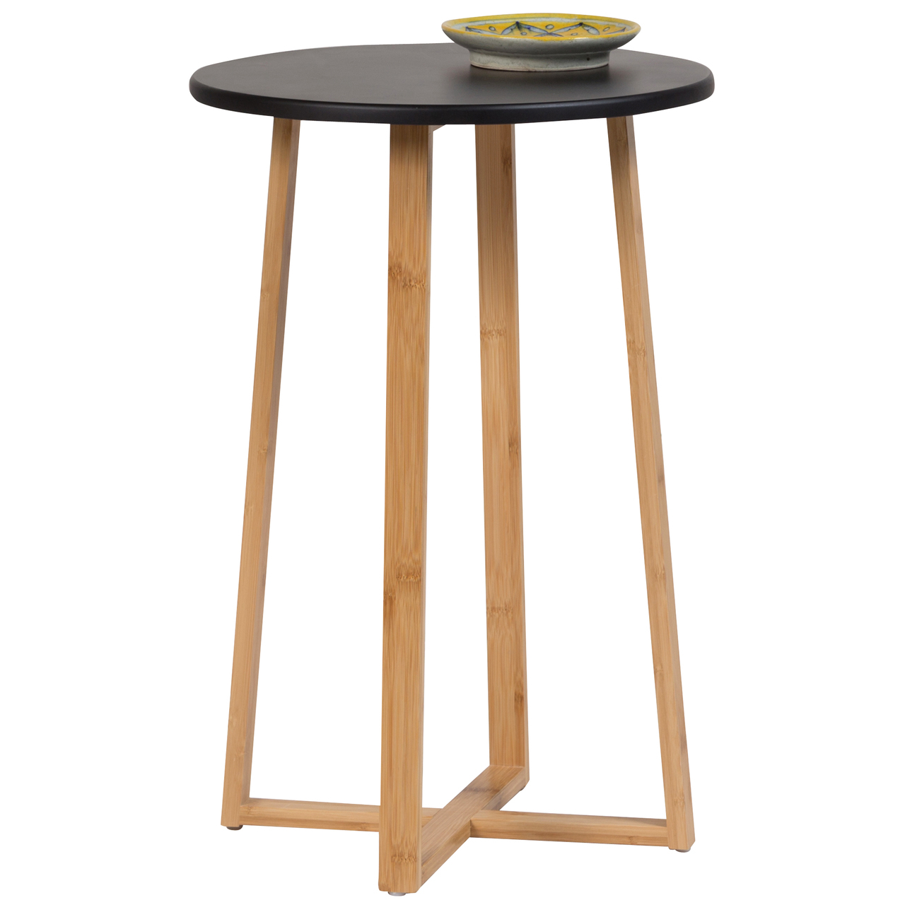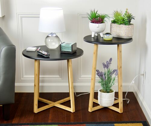 This easy to assemble table is an ideal fit for any small space. Perfect for a couch side table or night stand, this occasional table is light weight yet sturdy. The legs have a modern contemporary cross design and can support items well due to the strength of the bamboo. Its versatility makes it a welcome addition to your home. This tall table pairs nicely with our short round tables.