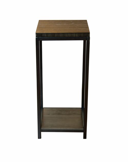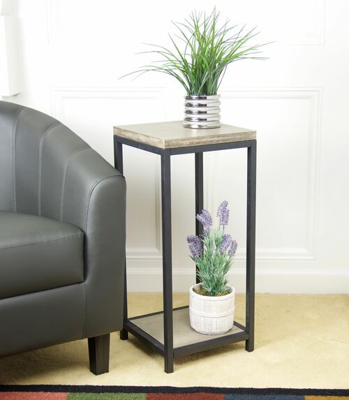 Complement your living area with this eye-catching rustic industrial bamboo with steel frame plant stand. Designed for small spaces and to fit an urban lifestyle. Its square top is expertly crafted from ecologically friendly bamboo, and comes in a delved brushed finish, showcasing a unique and beautiful texture. The easy to assemble steel frame is powder coated with a fine grit matte black finish, and supports a solid bamboo lower shelf, outlining the profile with bold simplicity. This table combines simple elegance, beautiful design, and a green sustainability story to make a perfect fit for your home, and a positive impact for the planet. After assembly, this product supports 150 lbs.