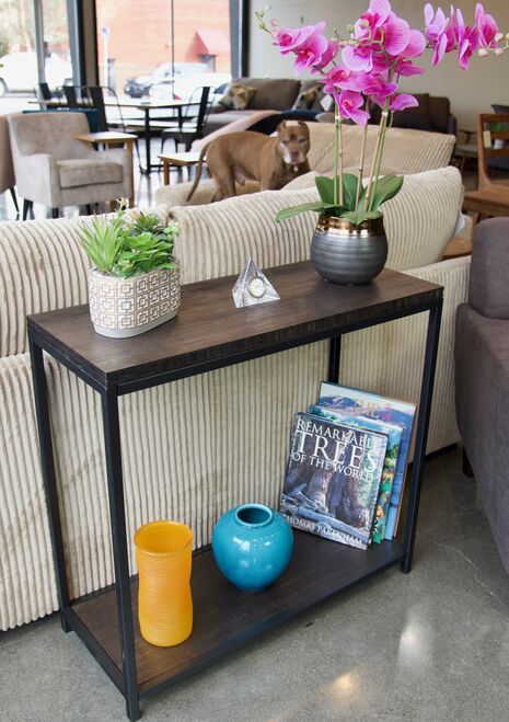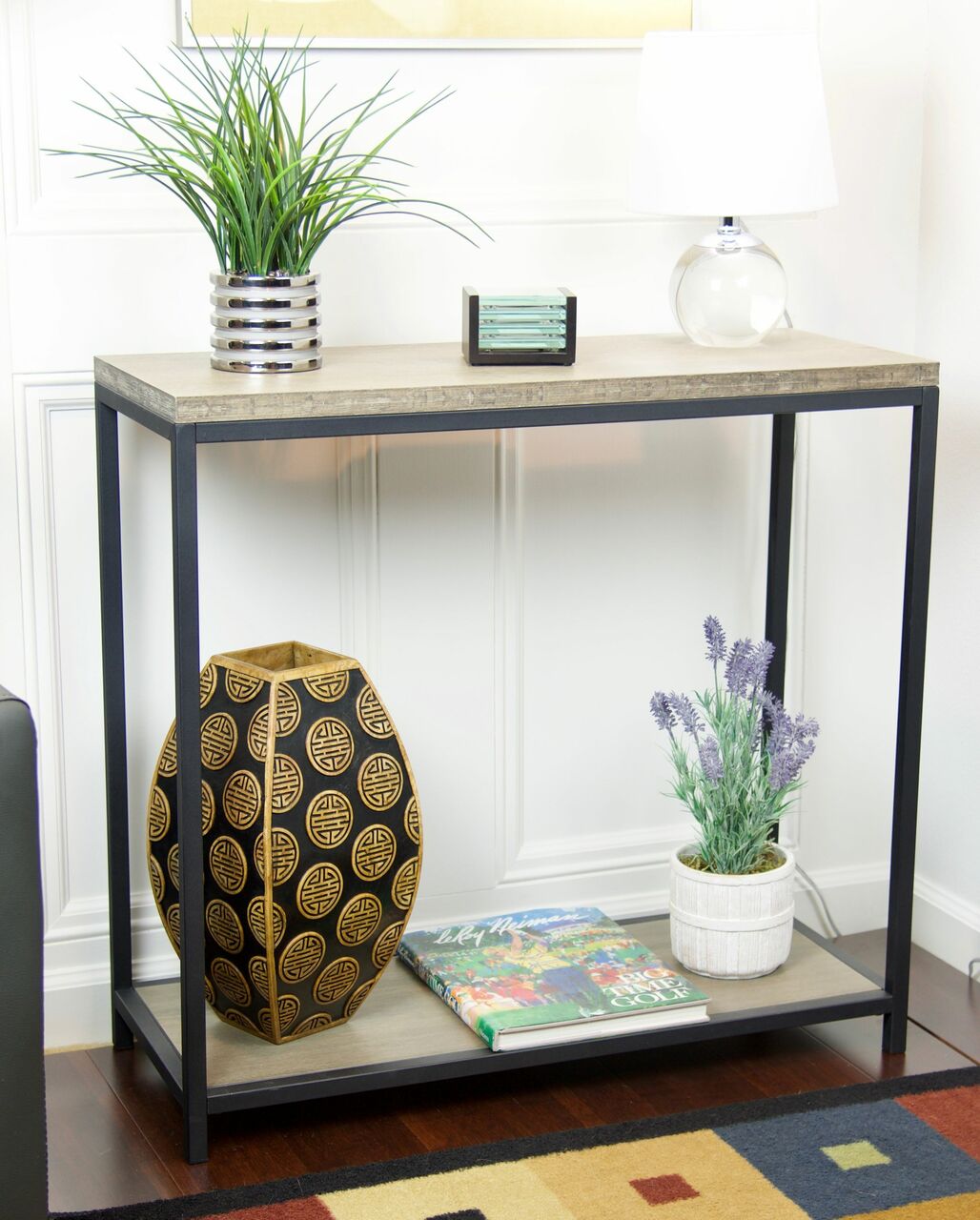 Complement your living area with this eye-catching rustic industrial steel frame with bamboo shelf console table. Scaled to fit an urban lifestyle, its rectangular top is expertly crafted from ecologically friendly bamboo, and comes in a delved brushed finish, showcasing the unique and beautiful texture. Its steel frame is powder coated with a fine grit matte black finish, and supports a solid bamboo lower shelf, outlining the profile with bold simplicity. With minimal pieces the steel frame is easy to assemble. Combining simple elegance, beautiful design, and a green sustainability story this piece is a perfect fit for your home, and a positive impact for the planet. After assembly, the console table supports 150 lbs.