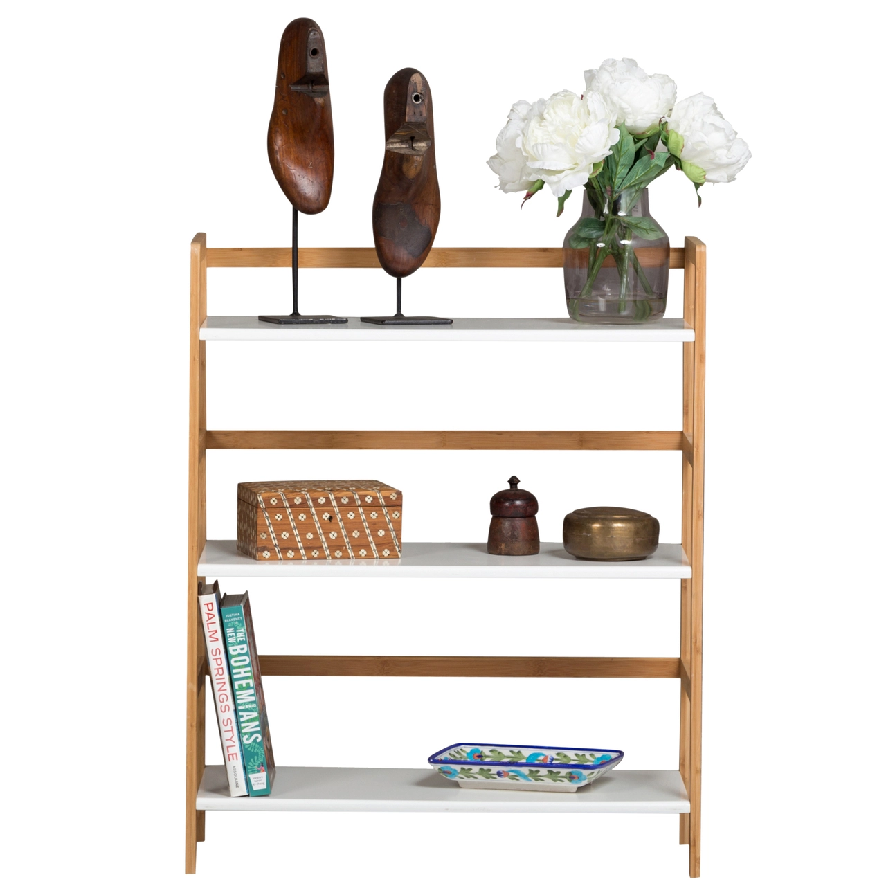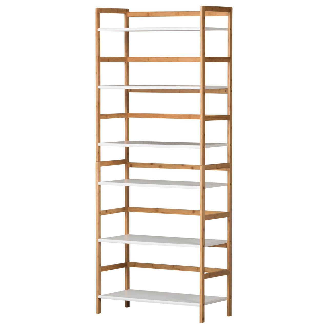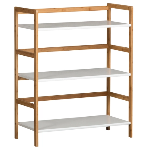With ample shelving and rear bamboo gallery rails this stackable bookshelf is a dynamic way to organize any room or small space. Shelving on this item features softly rounded waterfall front edges, and is framed by ecologically friendly bamboo. The beautiful soft finish serves a clean look, without clashing against current color scheme. Each unit comes with 4 dowels to use in safely stacking up to 2 units. After assembly, each shelf supports 150 lbs.