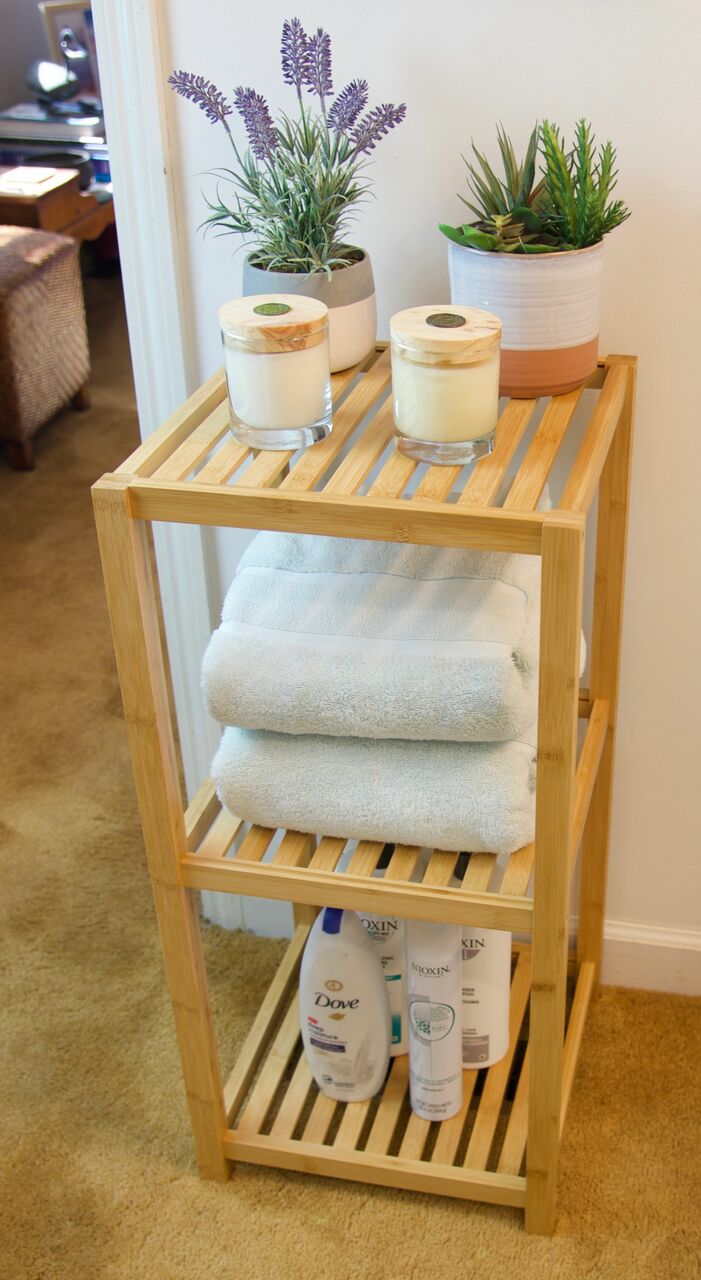 This 3-tier slatted solid bamboo tower shelf is the perfect storage solution for any small space. You can trust that the sturdy, wet environment and eco-friendly bamboo construction makes it desirable for a variety of uses, without worry of water absorption or bacterial build-up. Not limited to your spa or bathroom, this piece is an ideal choice for every room in your home.