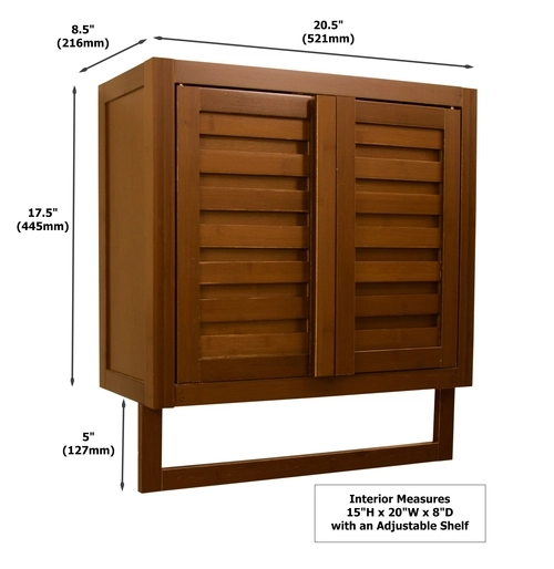 This ideal wall hanging space saving design utilizes the often-unused wall space adding storage options to any bathroom. The sustainable bamboo cabinet is perfect for wet environments. You can trust the sturdy, eco-friendly bamboo construction makes it desirable for a variety of uses, without worry of water absorption or bacterial build-up. The completely enclosed 2 door cabinet is dust-free and includes an adjustable interior shelf providing ample space to hold your towels, tissue, shampoo, and spa accessories. An ideal design and versatility for your bath and spa areas.