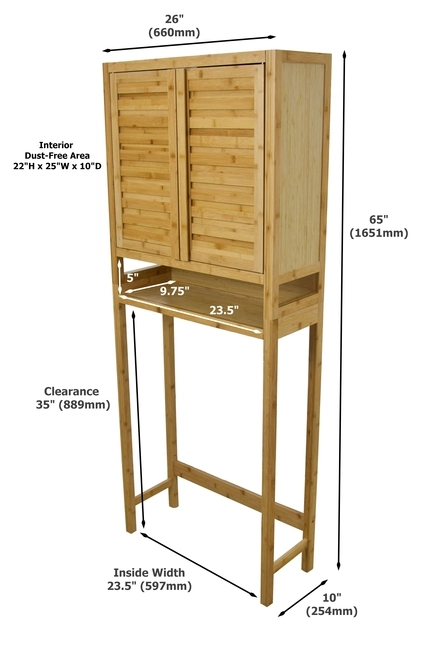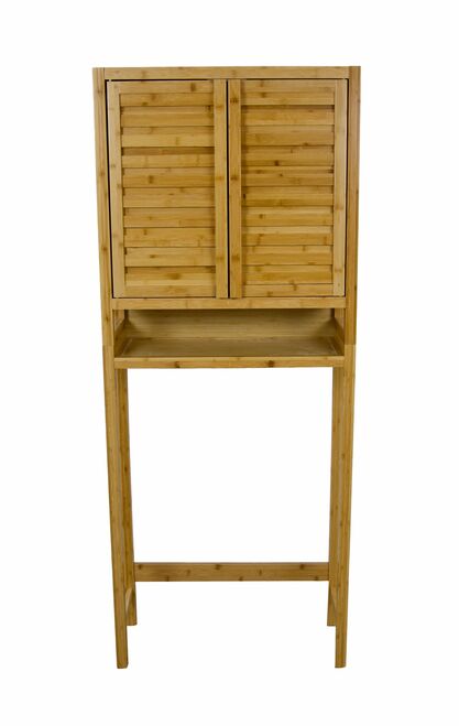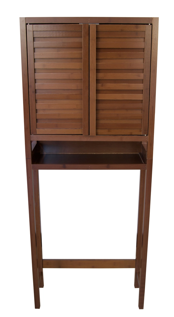 This ideal space saving design utilizes the often-unused space over your toilet, adding storage options to any bathroom. The sustainable bamboo etagere’ is perfect for wet environments. You can trust the sturdy, eco-friendly bamboo construction makes it desirable for a variety of uses, without worry of water absorption or bacterial build-up. The completely enclosed 2 door cabinet is dust-free and includes an adjustable interior shelf providing ample space to hold your towels, tissue, shampoo, and spa accessories.